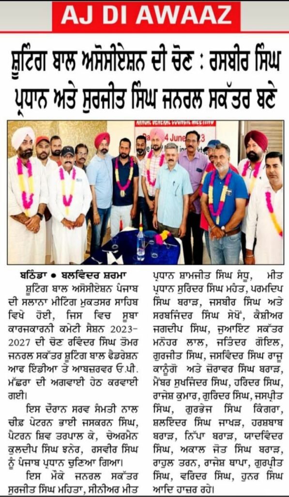 New election of Punjab Shooting ball Association in the presence SBFI observer take place at Bhangal Abohar on dated 27.07.2019 and elected Sujeet Singh as Secretary and Gurpreet Singh as President. Ex Secretary refuse to provide association related papers The house of Punjab Shooting ball Association unanimously passed a resolution to form new association. new Association namely Shooting ball Association , Punjab with Registration number 095/2021-22 dated 06.07.2021 formed and get affiliation to Shooting ball Federation of India.